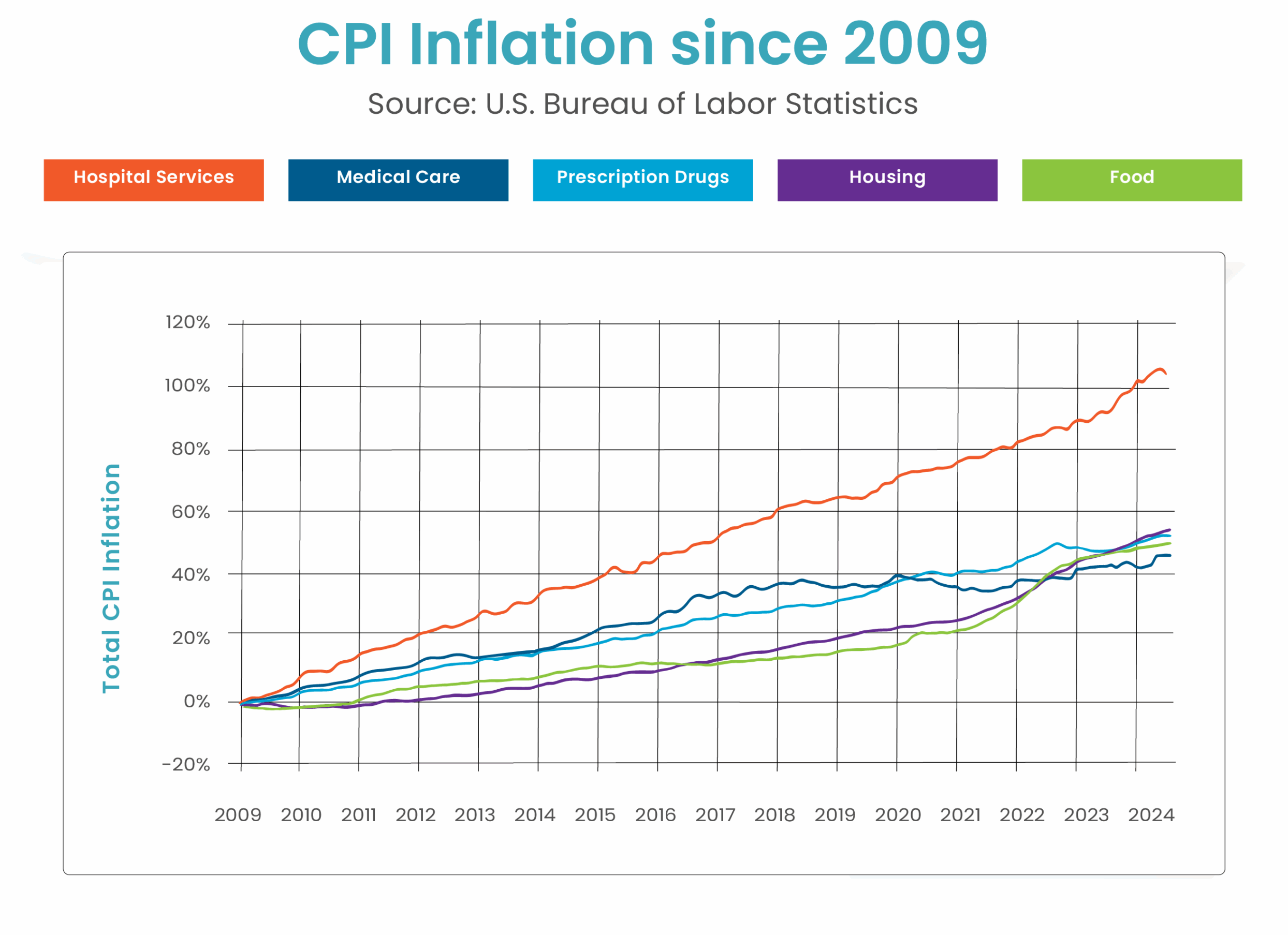 Due to a lack of transparency within the hospital industry, there is not enough information publicly available to explain these discrepancies and pricing trends. In the last 15 years, hospital prices have risen 100 percent compared with 40 to 50 percent for housing and food. This is not sustainable. These out-of-control increases have far reaching downstream effects for patients, employers, payors, and governing bodies. Our Coalition is committed to expanding hospital price transparency, holding the healthcare industry accountable for unsustainable price increases, and implementing cost-saving measures to protect access to affordable healthcare across New York and New Jersey.